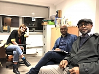 Kate Kelsall (pictured with our partners Chike Azuonye and Hassan Aliyu from the Nigerian Arts Society UK) joined IROKO part-time in February.